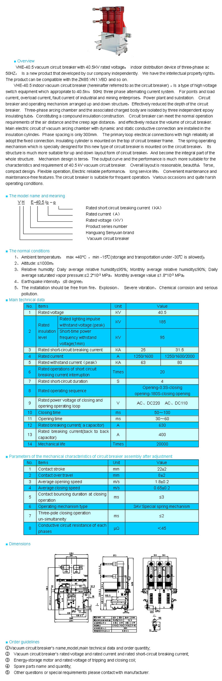 | VHE-40.5 indoor high voltage vacuum circuit breaker (Insulating cylinder structure) | |