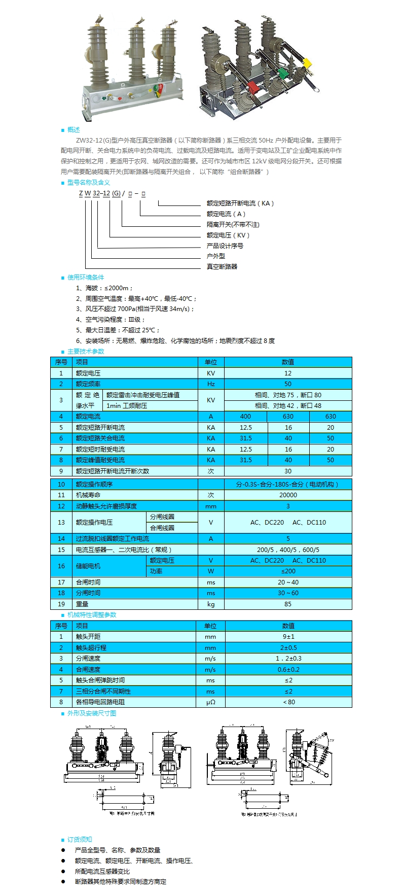 | ZW32-12(G)型戶外高壓真空斷路器 | |