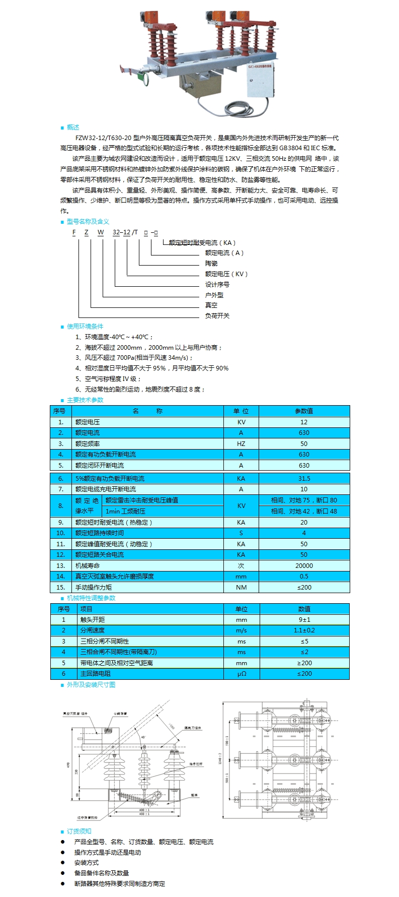 | FZW32-12型戶外交流高壓真空負(fù)荷開關(guān) | |